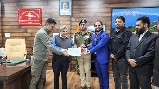 Actor, writer, Director and Journalist Raja Sarfaraz Ahmed from Jammu and Kashmir have been awarded as “Youth Icon” by LG Govt of UT Jammu and Kashmir. The award was handed over by Deputy Commissioner Doda Vishesh Mahajan, Senior Superintendent of Police Mr Abdul Qayoom, ADC Doda, PR and District information officer Mr Ashraf Wani and others were present at an award ceremony at District head quarters Doda. While speaking on occasion DC Doda Said “Raja Sarfaraz is an inspiration for young talented youth especially those who want to achieve something keeping life hurdles aside and shine with their hard work and dedication like he is doing and we are proud of him, Youth should come forward for fitness, sports and education which is the prime importance of LG government. Doda is a beautiful District with high tourism potential, and agriculture, Topographically and also had numerous talented youth in different fields. Raja Sarfaraz while thanking DC Doda Mr Vishesh Mahajan said ” I’m humbled to receive this it means a lot meanwhile makes me more responsible to maintain that dignity, well im thankful to worthy DC sir whose generosity is bringing new hopes and a perfect affection of LG govt to Ground zero, admire the way Respected DC sir is creating miracles, we will soon together come up with innovations and ideas that will uplift culture, the art of District especially and Promote it on National level”, Raja Sarfaraz added his words of thanks to SSP Mr Abdul Qayoom as well saying Doda police are just marvellous, especially in fighting against Drugs and the evil, Their Doctrine is clear and amazing.